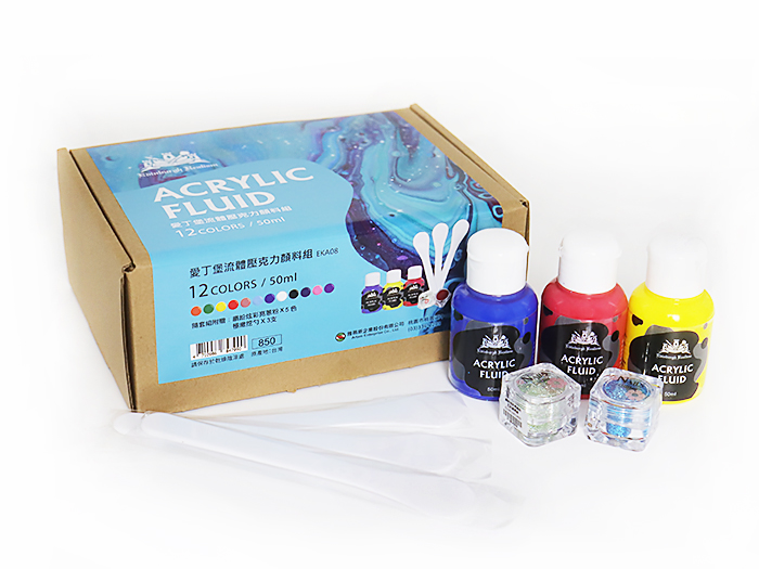 流體壓克力顏料50ml*12+亮粉*5+塑膠挖勺*3